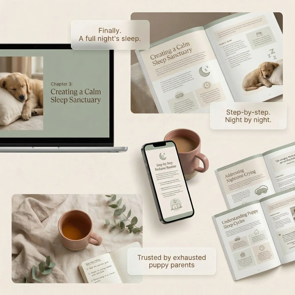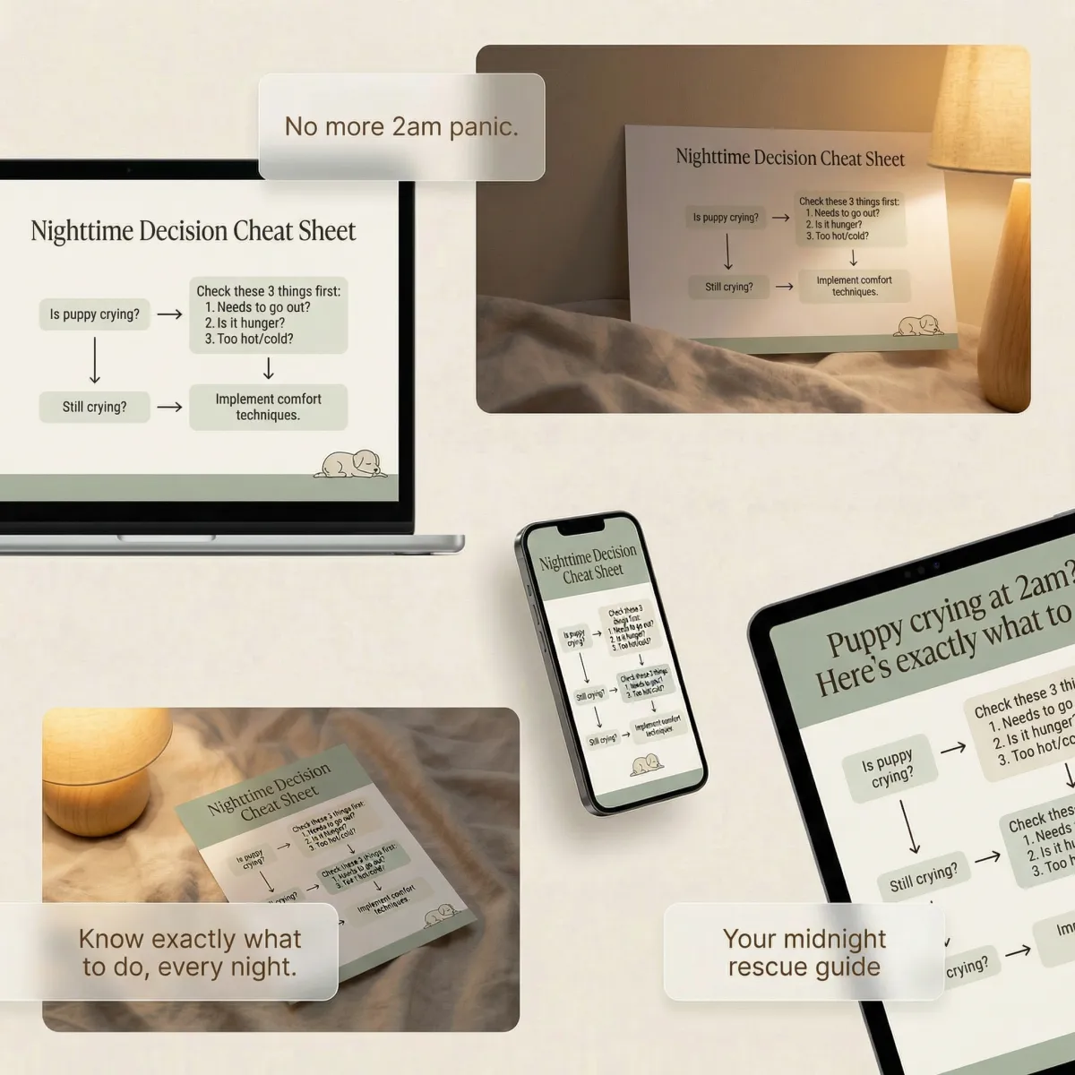 Download the system, start tonight, and finally know exactly what to do when your puppy cries.