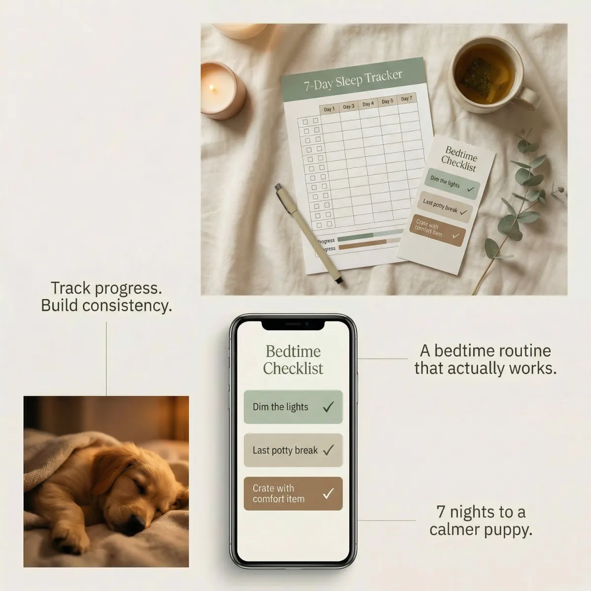 A step-by-step system that helps you fix the real cause of nighttime crate crying, build a calm bedtime routine, and know exactly when to respond vs ignore.