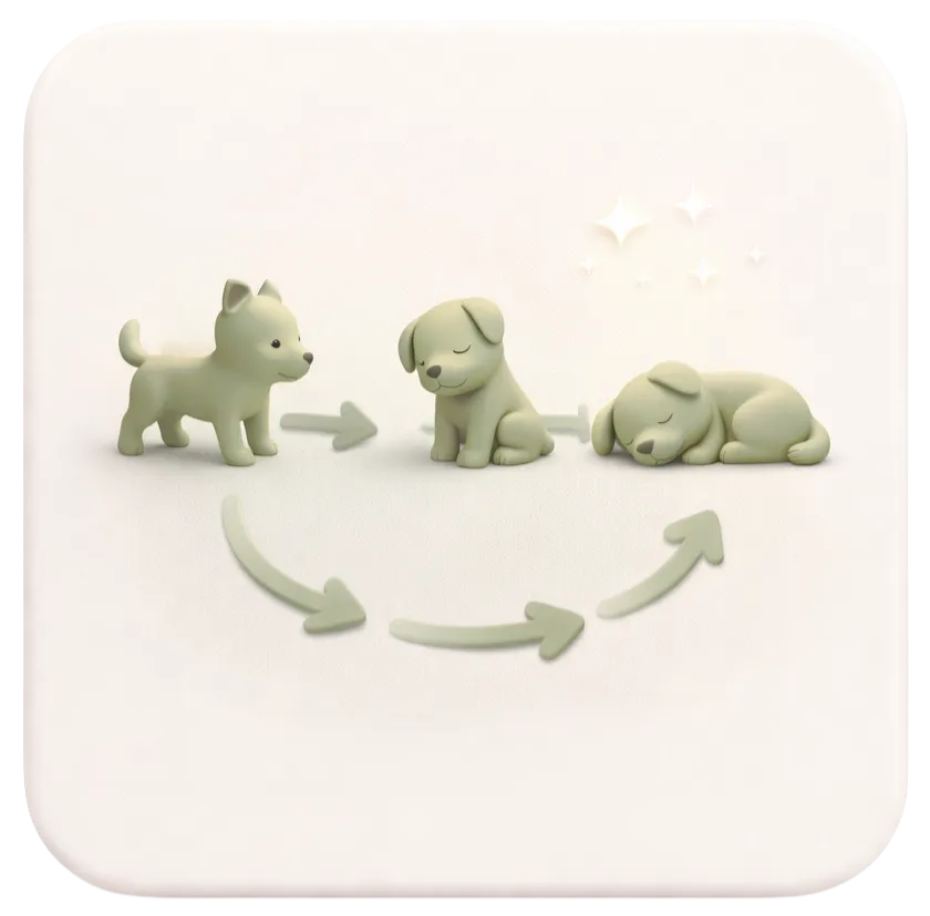 Use the right wind-down window before bed so your puppy is calm and ready to settle — not wired and chaotic.